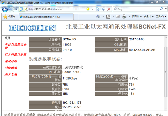 易控INSPEC軟件通過以太網(wǎng)連接三菱FX系列PLC(FX1N,FX1S,FX2N,FX3U,FX3G),BCNet-FX通訊模塊為PLC提供以太網(wǎng)通訊接口。